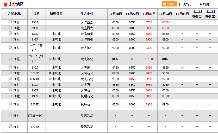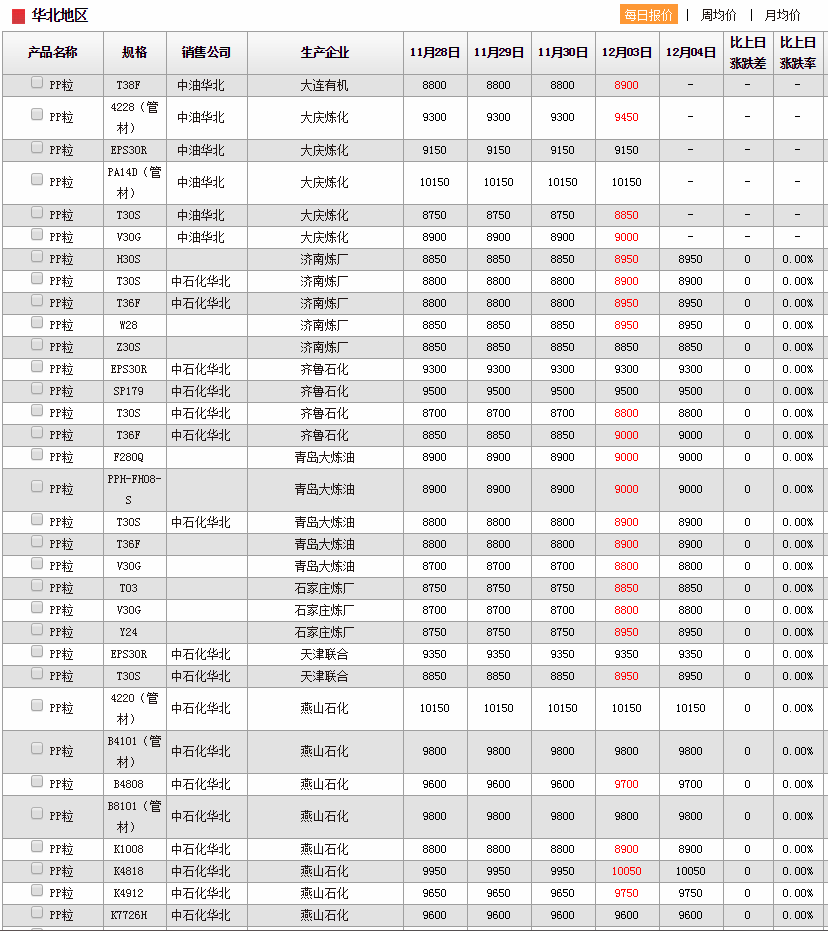 pp粉企业出厂价格