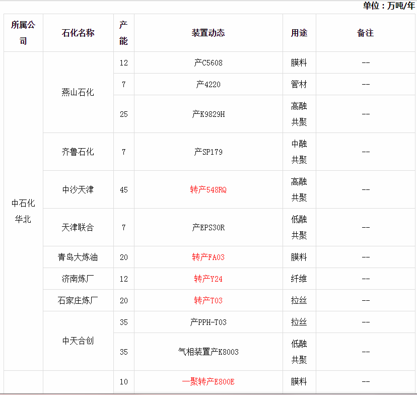 聚乙烯装置汇总