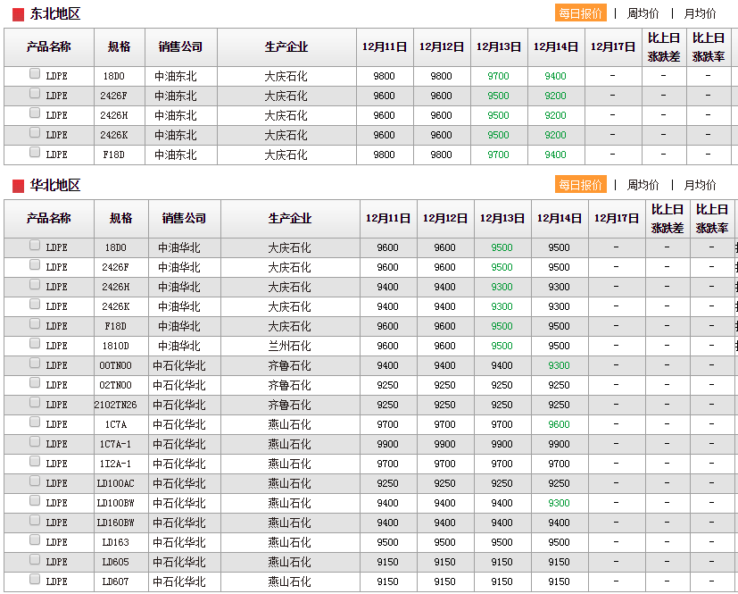 LDPE企业出厂价格