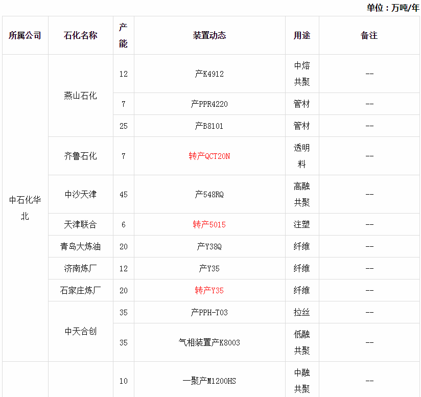 聚乙烯装置汇总