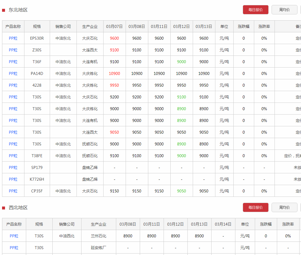 pp粉企业出厂价格