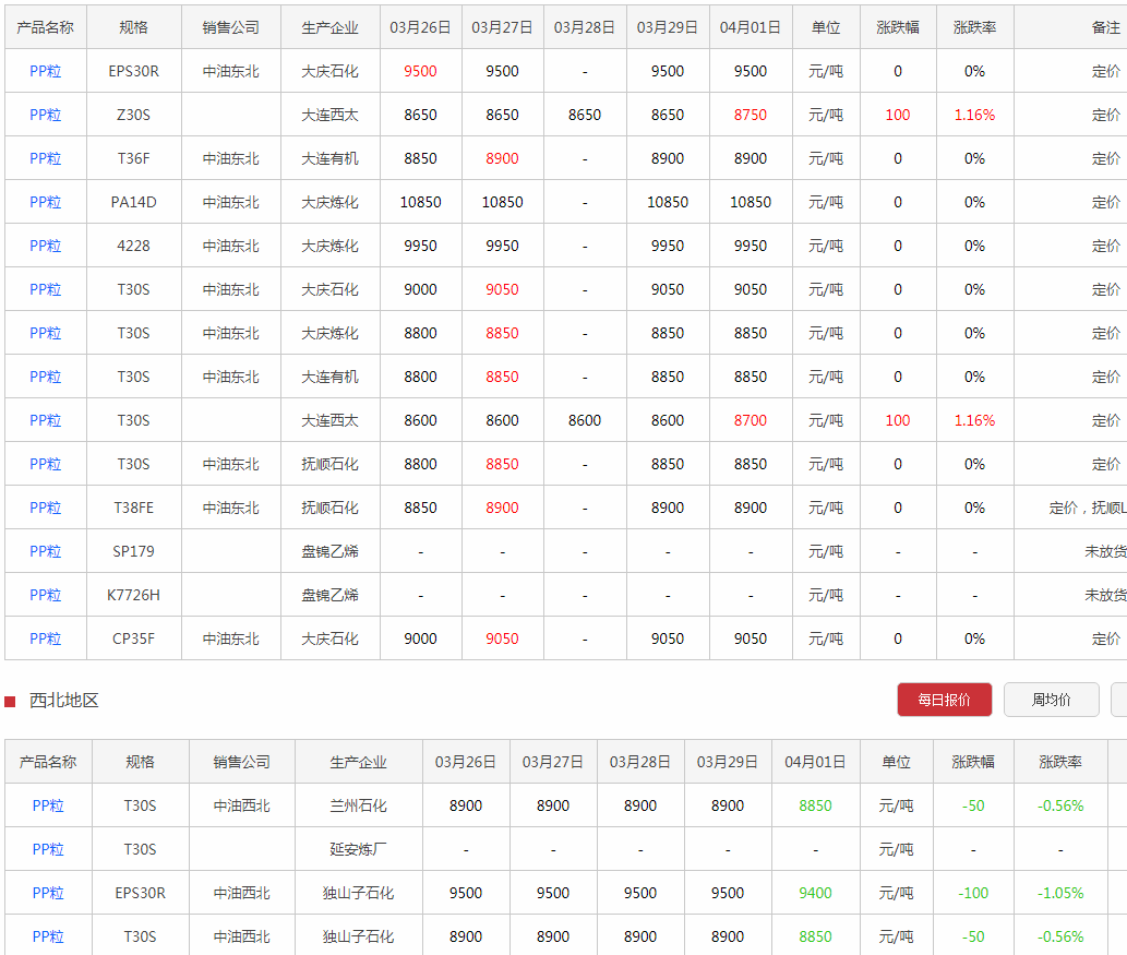 pp粉企业出厂价格