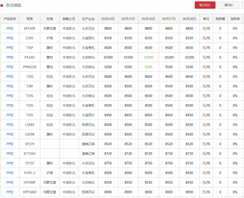 pp粉企业出厂价格