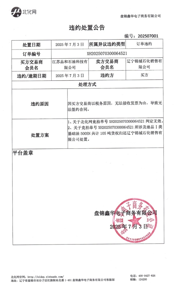 违约处置公告202507001